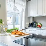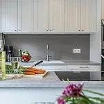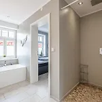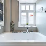 Dit appartement biedt gasten de handige voorziening van een haardroger en badlakens in de badkamer. Je vindt er ook een badkuip, een inloopdouche en een apart toilet.